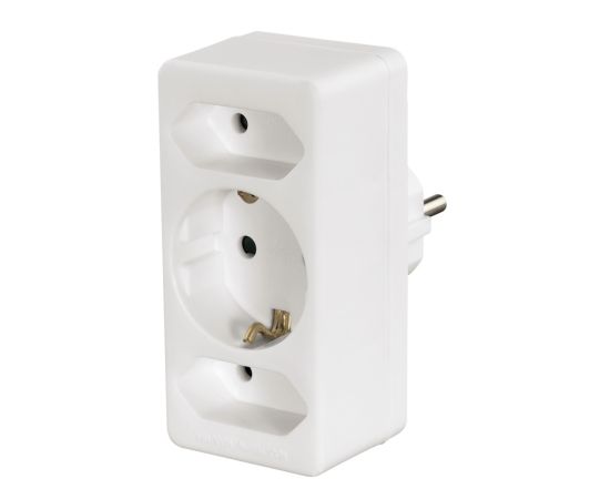 Компактный переходник на 1 розетку с заземлением и 2 розетки евро