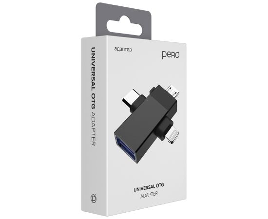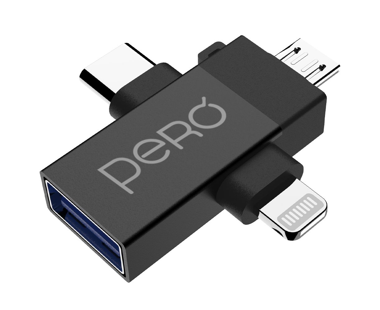 Адаптер PERO AD14 OTG LIGHTNING+USB-C+MICRO-USB TO USB 3.0, черный
