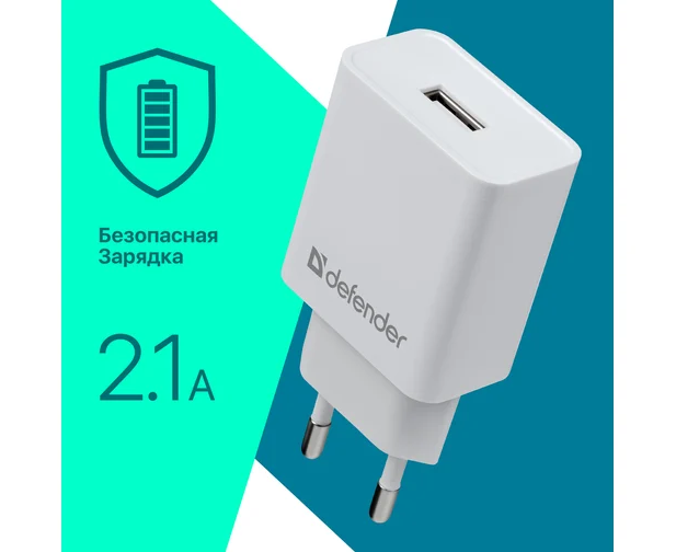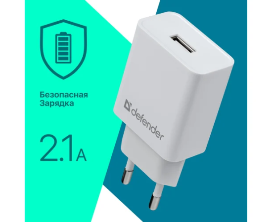 СЗУ DEFENDER EPA-10 белый, 1хUSB, 5V/2.1А 83549
