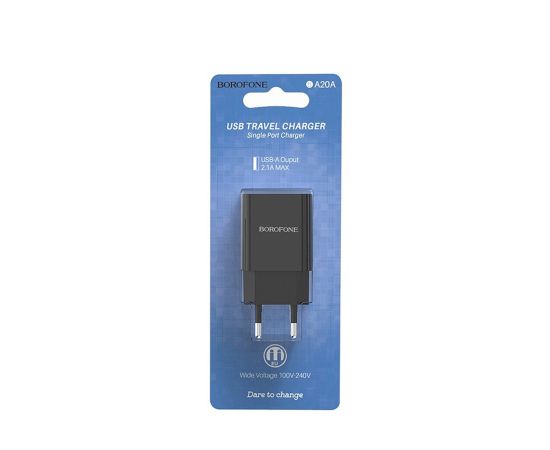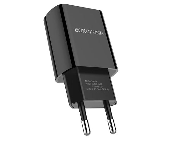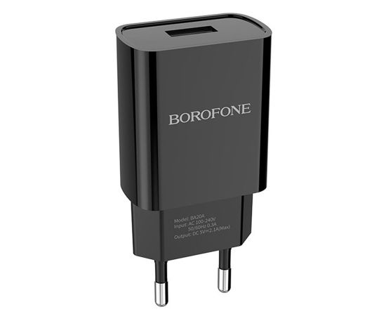 Адаптер Сетевой Borofone BA20A Sharp 1USB/5V/2.1A (black)