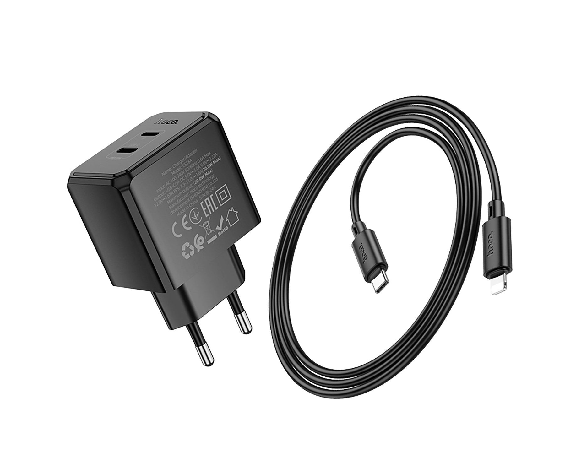 Адаптер Сетевой Hoco CS16A Wish Type-C/Lightning 3A/20W (black) (241002)