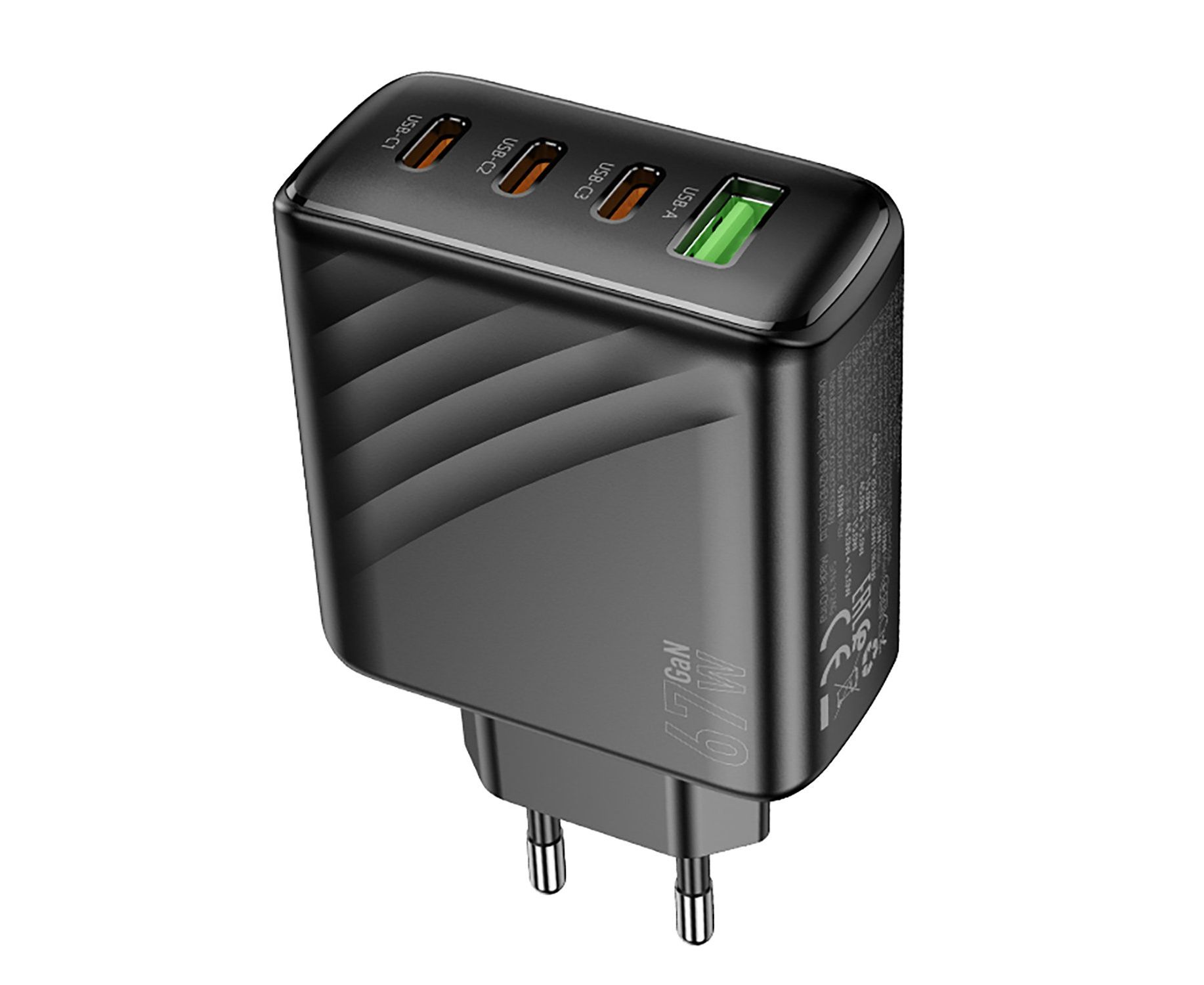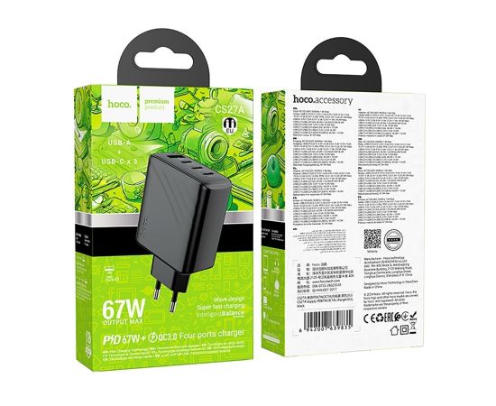 Адаптер Сетевой Hoco CS27A Supply PD+QC 3Type-C/USB 3A/67W (black) (241000)