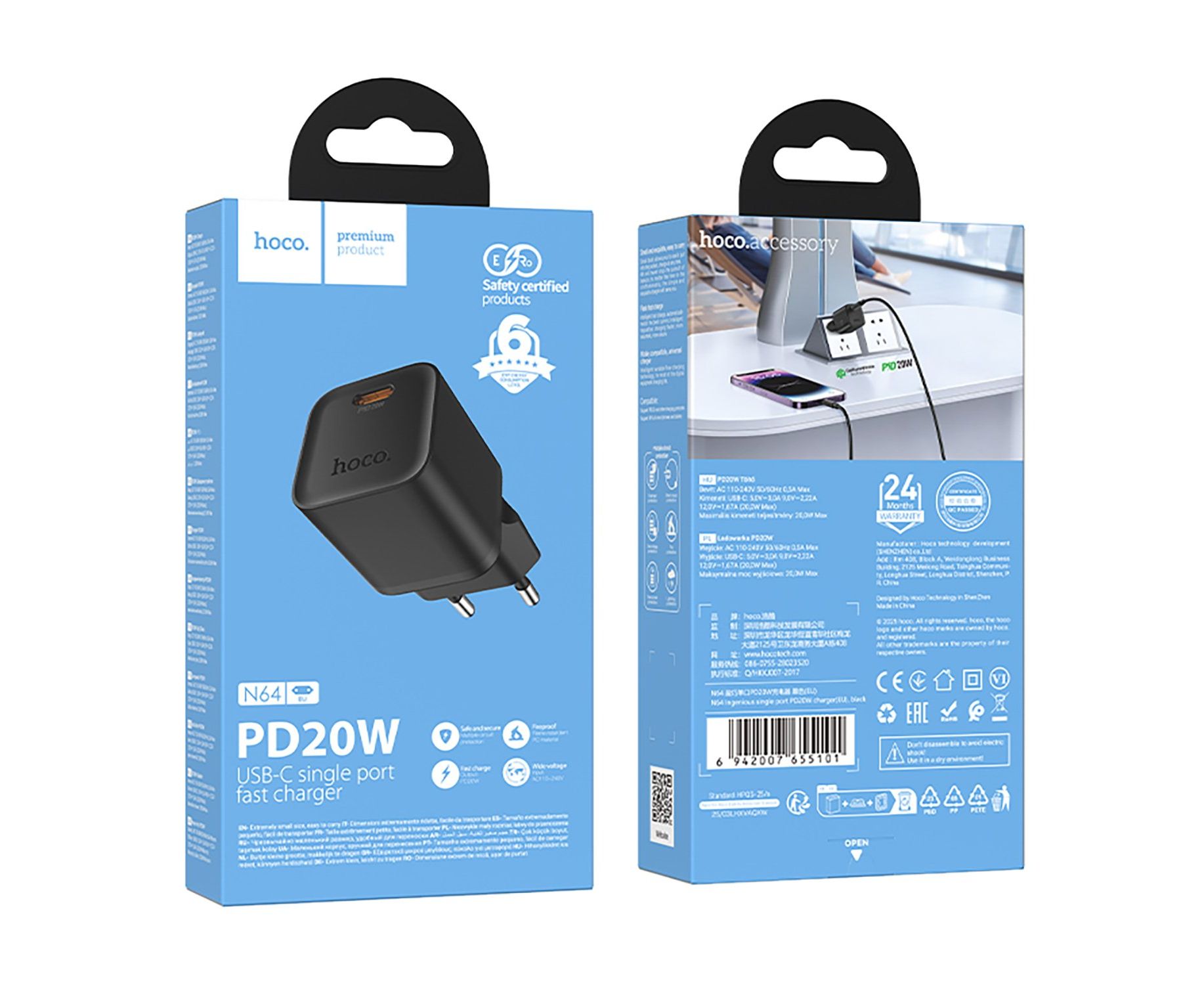 Адаптер Сетевой Hoco N64 PD Type-C 3A/20W (black) (242952)