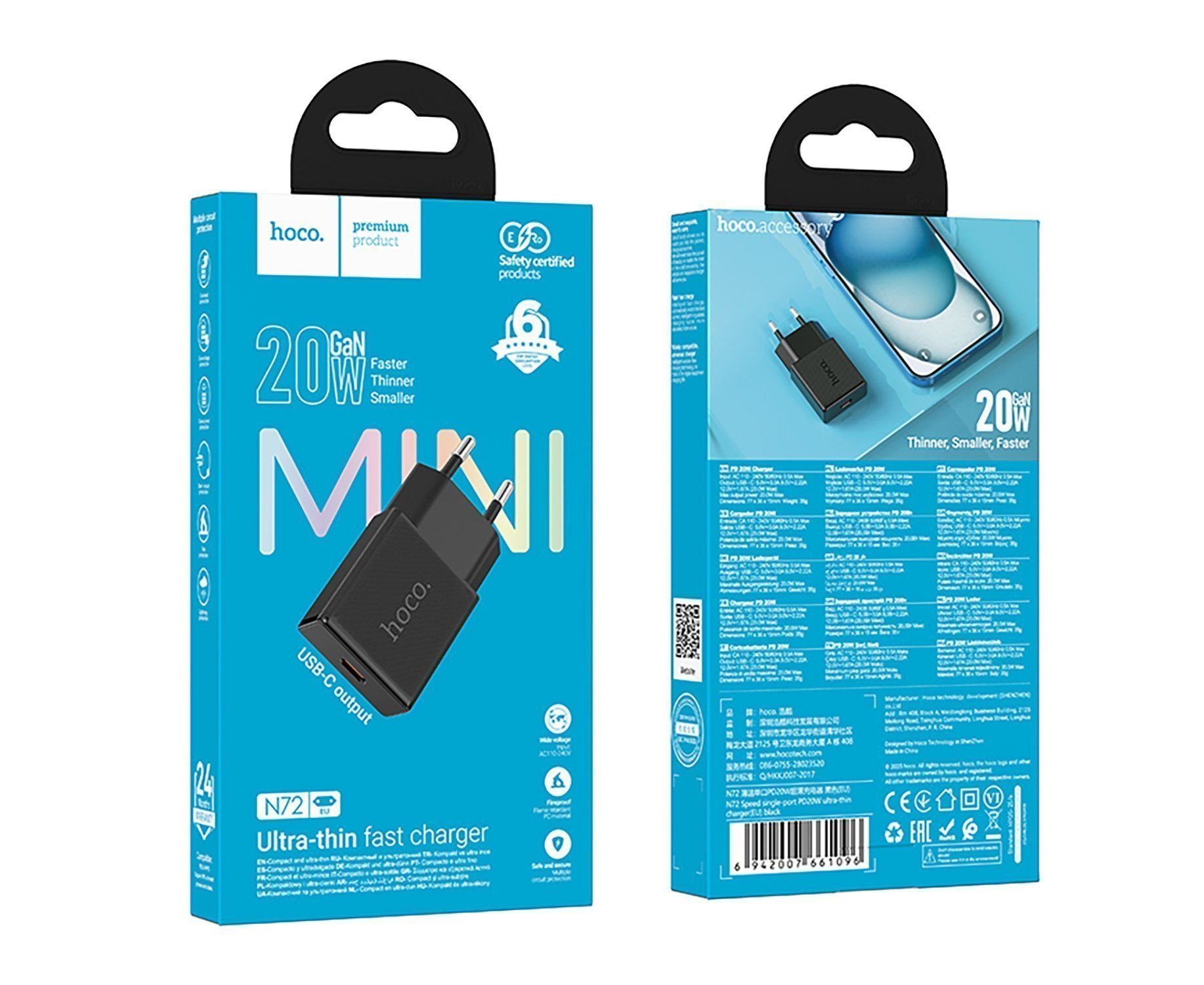 Адаптер Сетевой Hoco N72 Mini PD Type-C 3A/20W (black) (242966)