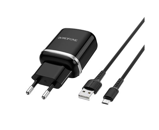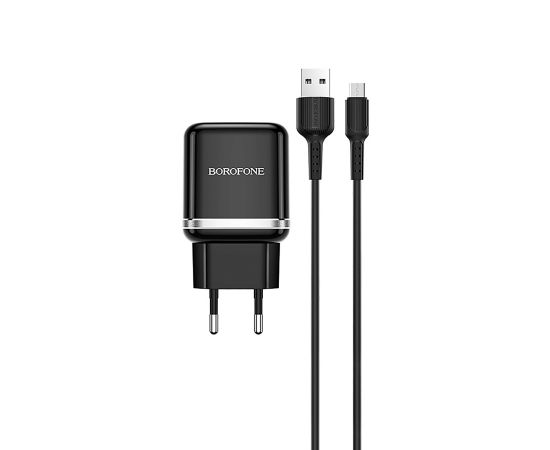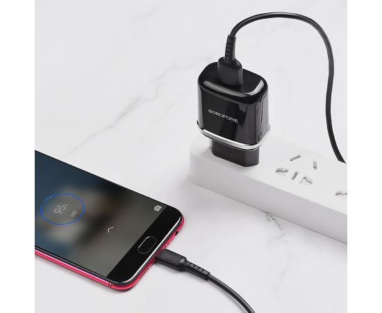 Адаптер Сетевой с кабелем Borofone BA36A High QC3.0 USB 3A/18W (USB/Micro USB) (black) (133678)