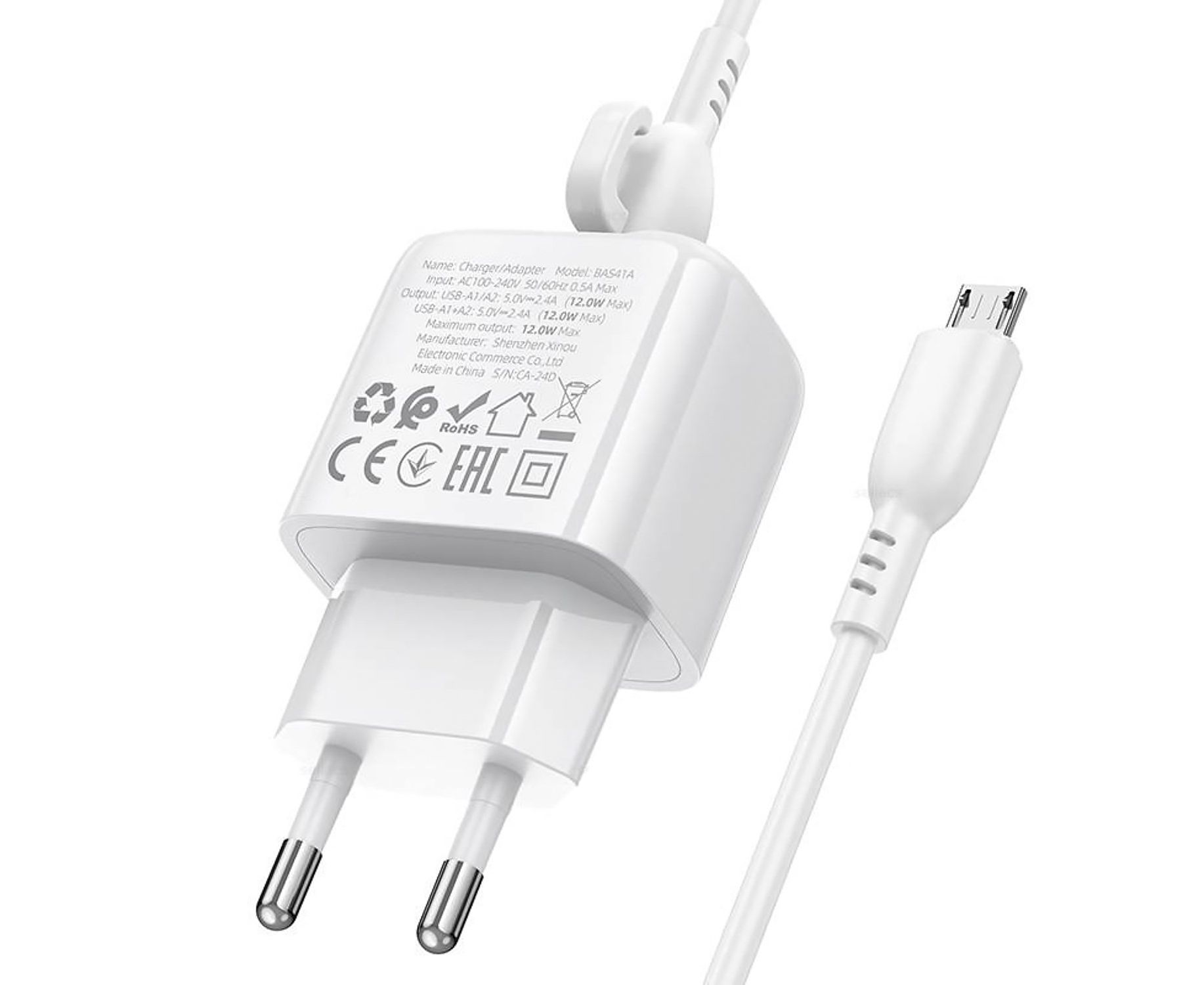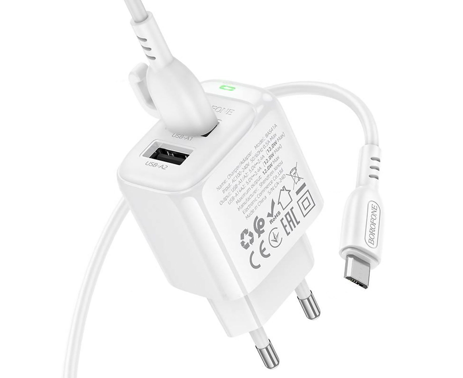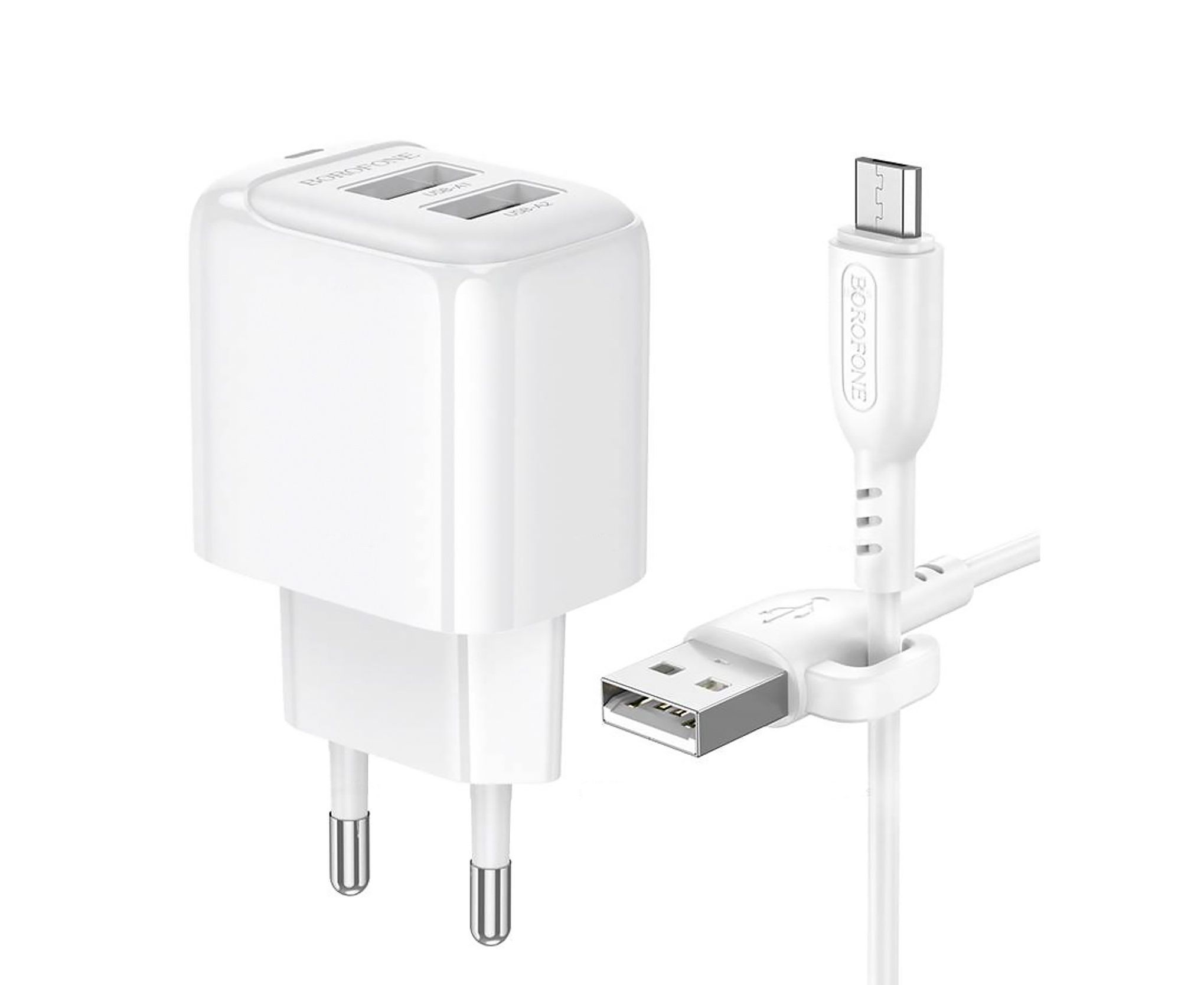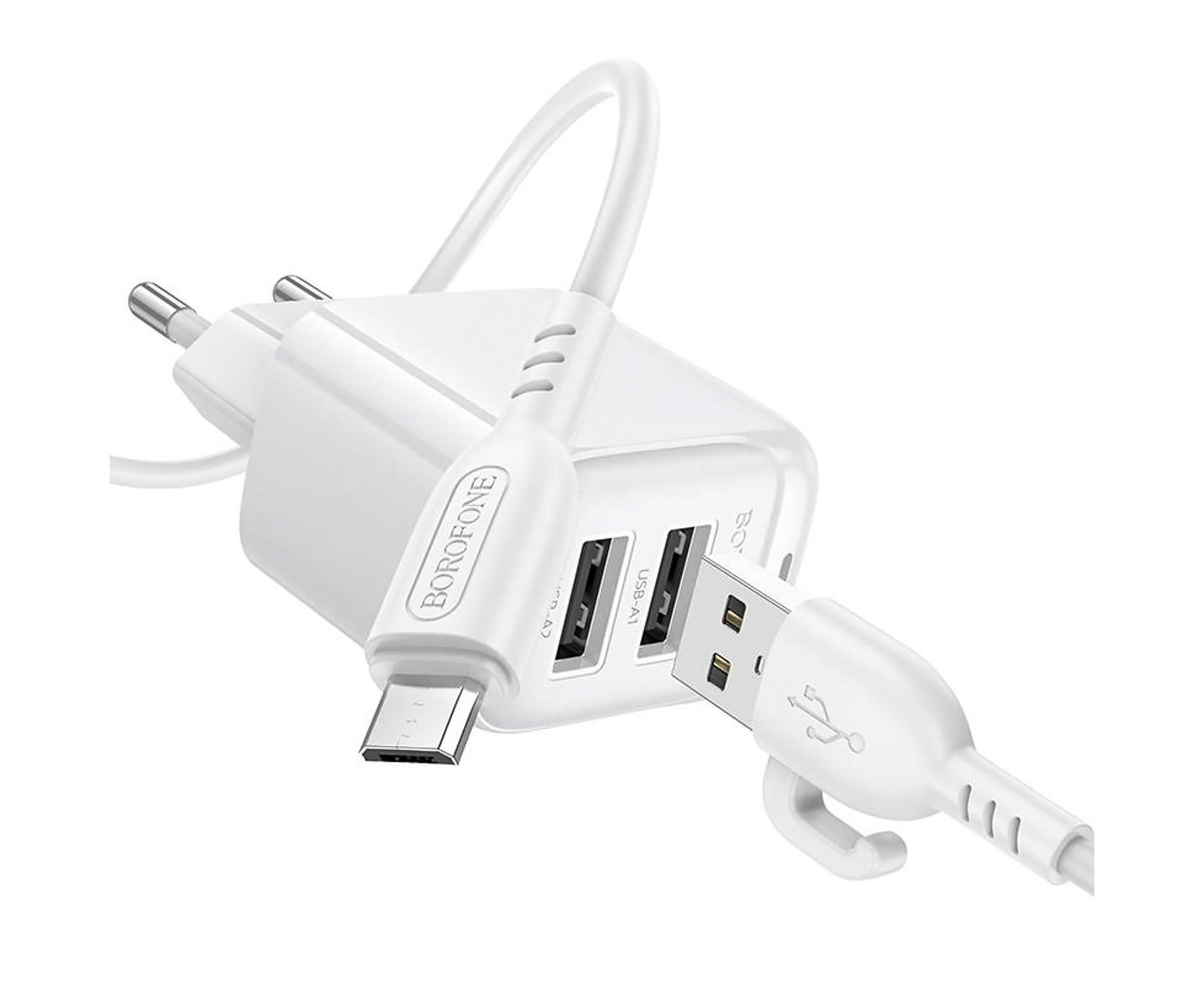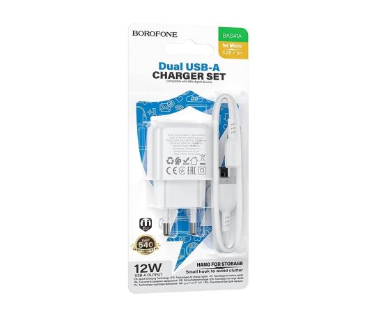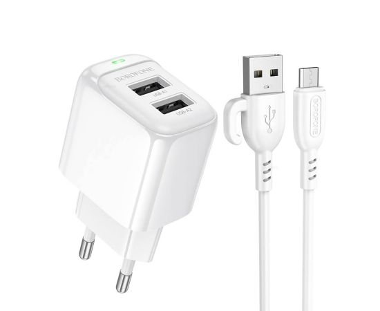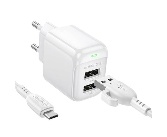Адаптер Сетевой с кабелем Borofone BAS41A Potential 2USB 2,4A/12W (USB/Micro USB) (white) (235126)