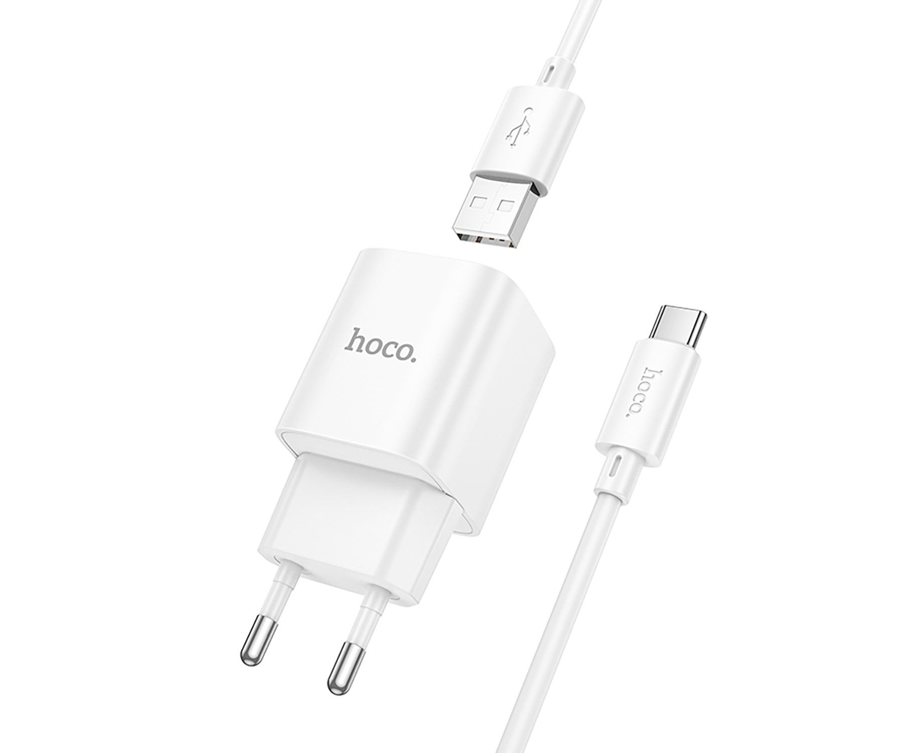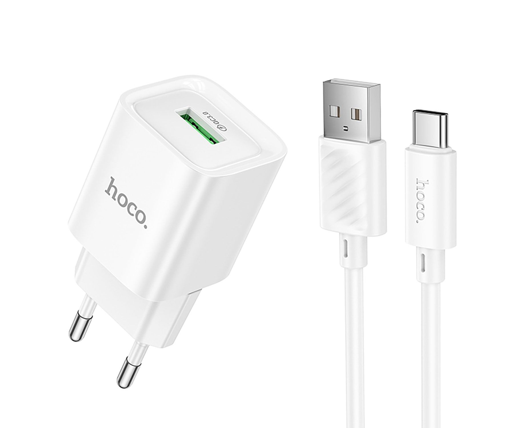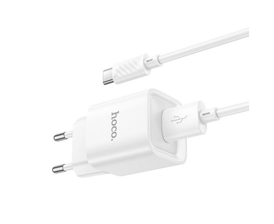 Адаптер Сетевой с кабелем Hoco C145A Charm USB 3A/18W (USB/Type-C) (white) (236008)