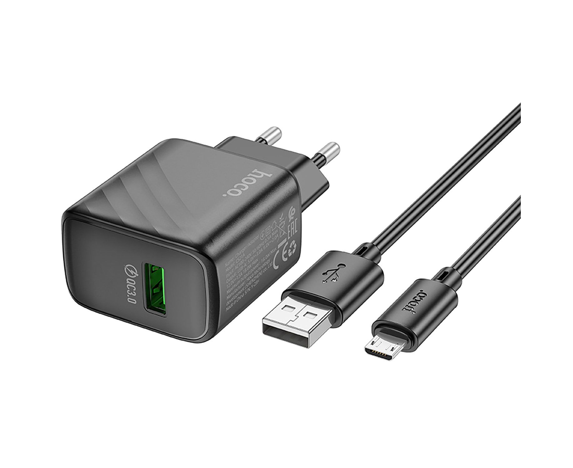 Адаптер Сетевой с кабелем Hoco CS21A Rich QC3.0 USB 18W (USB/Micro USB) (black) (222790)