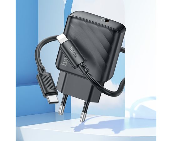 Адаптер Сетевой с кабелем Hoco CS22A Value PD Type-C 30W (Type-C/Lightning) (black) (222787)