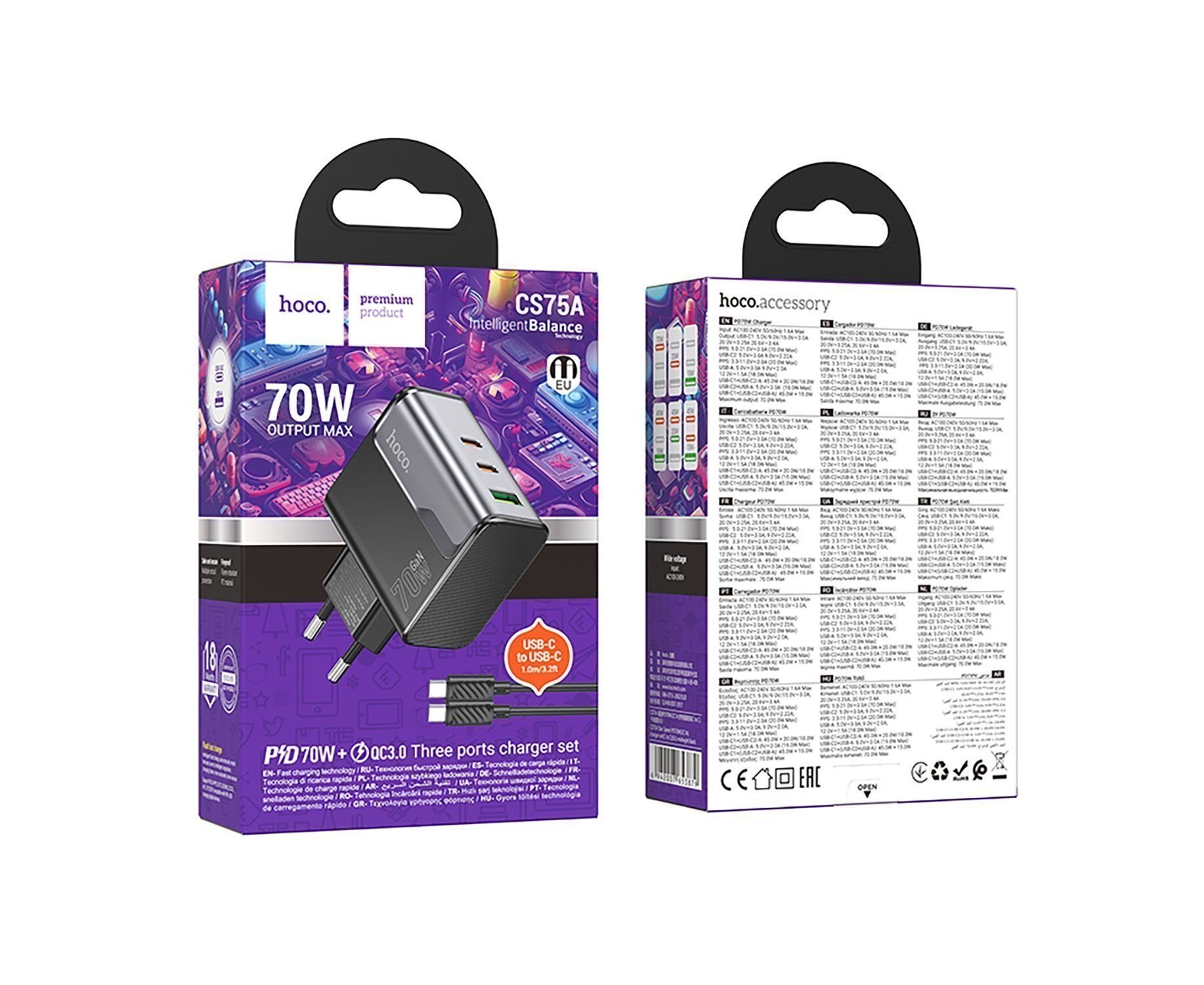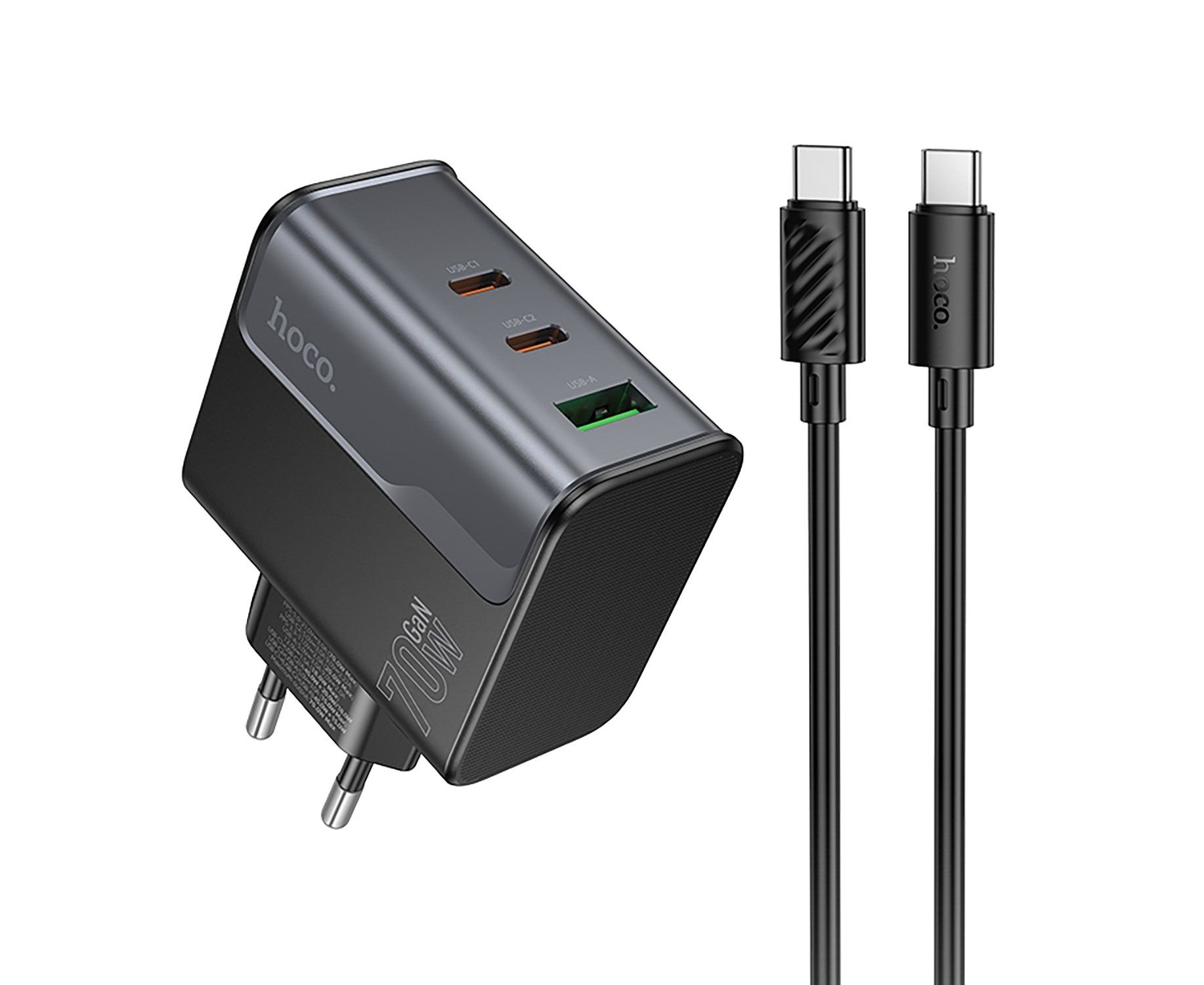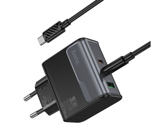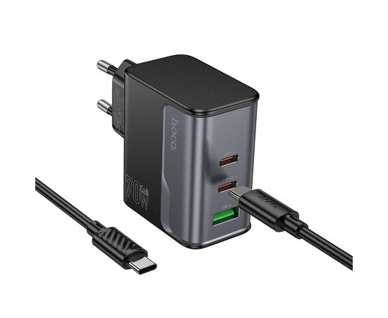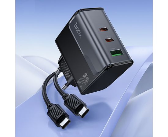 Адаптер Сетевой с кабелем Hoco CS75A Star PD+QC 2Type-C/USB 3A/70W (Type-C/Type-C) (240997)