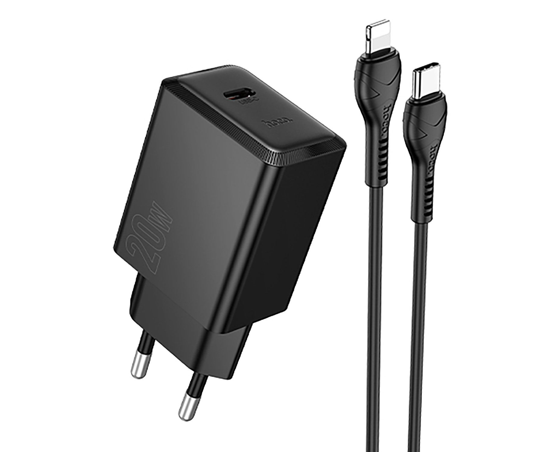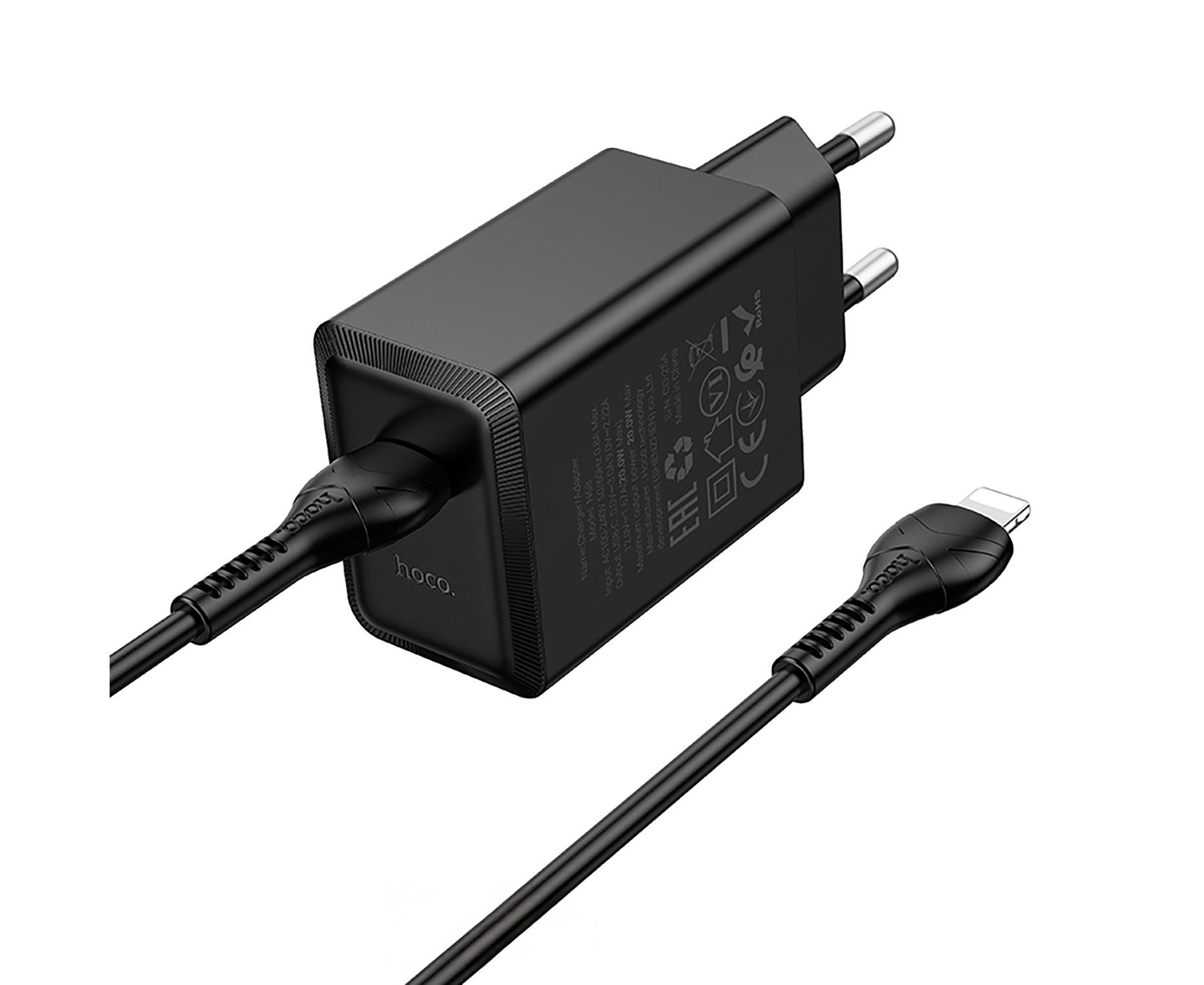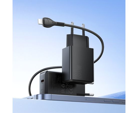 Адаптер Сетевой с кабелем Hoco N68 Nuevo PD Type-C 20W (Type-C/Lightning) (black) (242960)