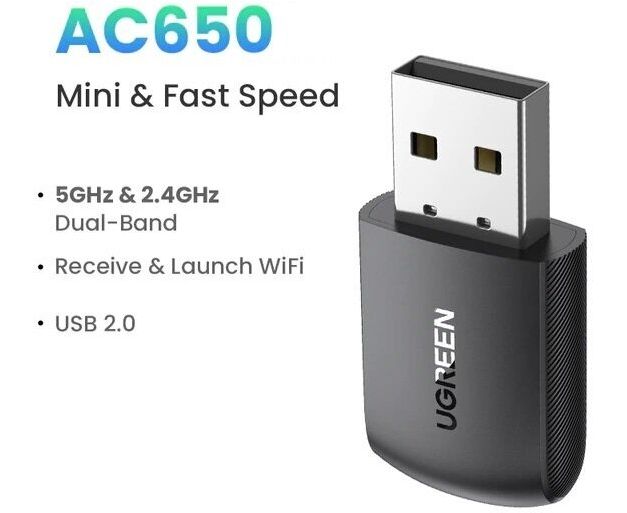 Адаптер UGREEN CM448 20204 AC650 11ac Dual-Band Wireless USB Adapter Black
