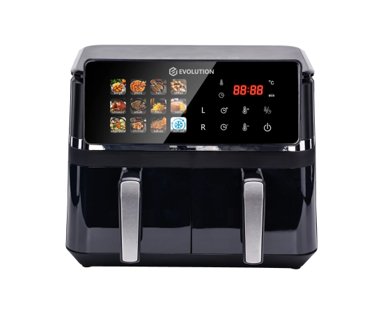 Аэрофритюрница Evolution AIRO 10500ТW Dual представляет собой высокопроизводительный аэрогриль, разработанный для профессионального и домашнего использования. Горизонтальная загрузка объемом 9 литров обеспечивает оптимальное распределение продуктов в двух независимых зонах нагрева, что значительно упрощает процесс приготовления и позволяет одновременно работать с разными ингредиентами. Прибор позволяет готовить большинство продуктов с минимальным количеством масла или вовсе без его добавления. Благодаря системе циркуляции горячего воздуха продукты обжариваются равномерно со всех сторон, получаясь при этом нежными внутри и с хрустящей корочкой снаружи.