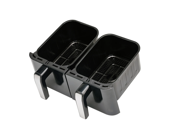 Две независимые зоны приготовления общим объемом 9 литров (4,5 л + 4,5 л). Вы можете одновременно готовить основное блюдо в одной корзине и гарнир в другой, устанавливая для каждой зоны свои настройки температуры и времени. 50 бумажных форм в комплекте обеспечивают удобство приготовления и очистки корзин.