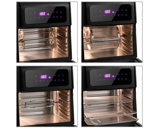 таймер, Стильный, большой и мощный аэрогриль является универсальным устройством, духовки, и совмещает в себе функции аэрофритюрницы, шашлычницы или даже сушилки для овощей и фруктов!