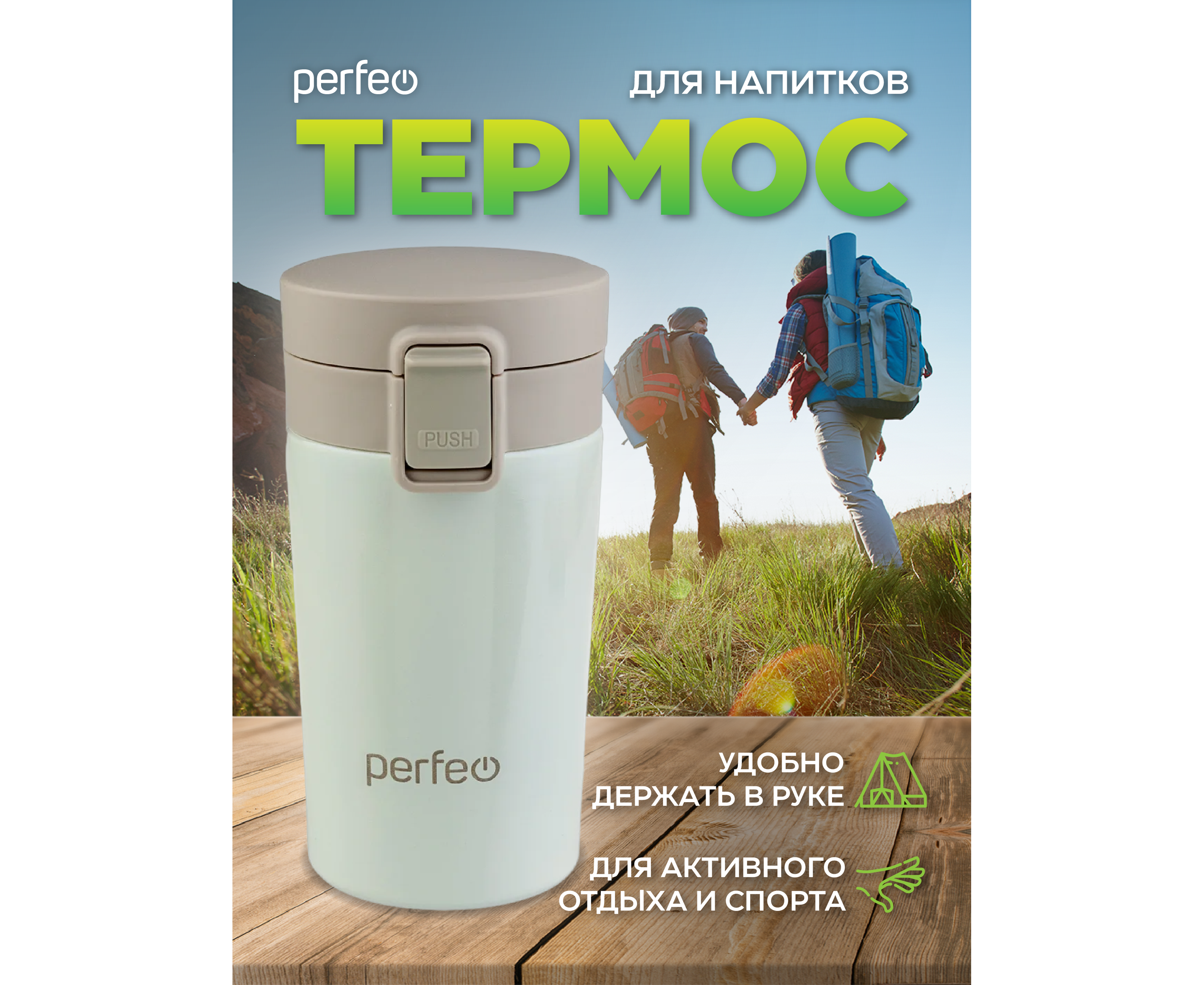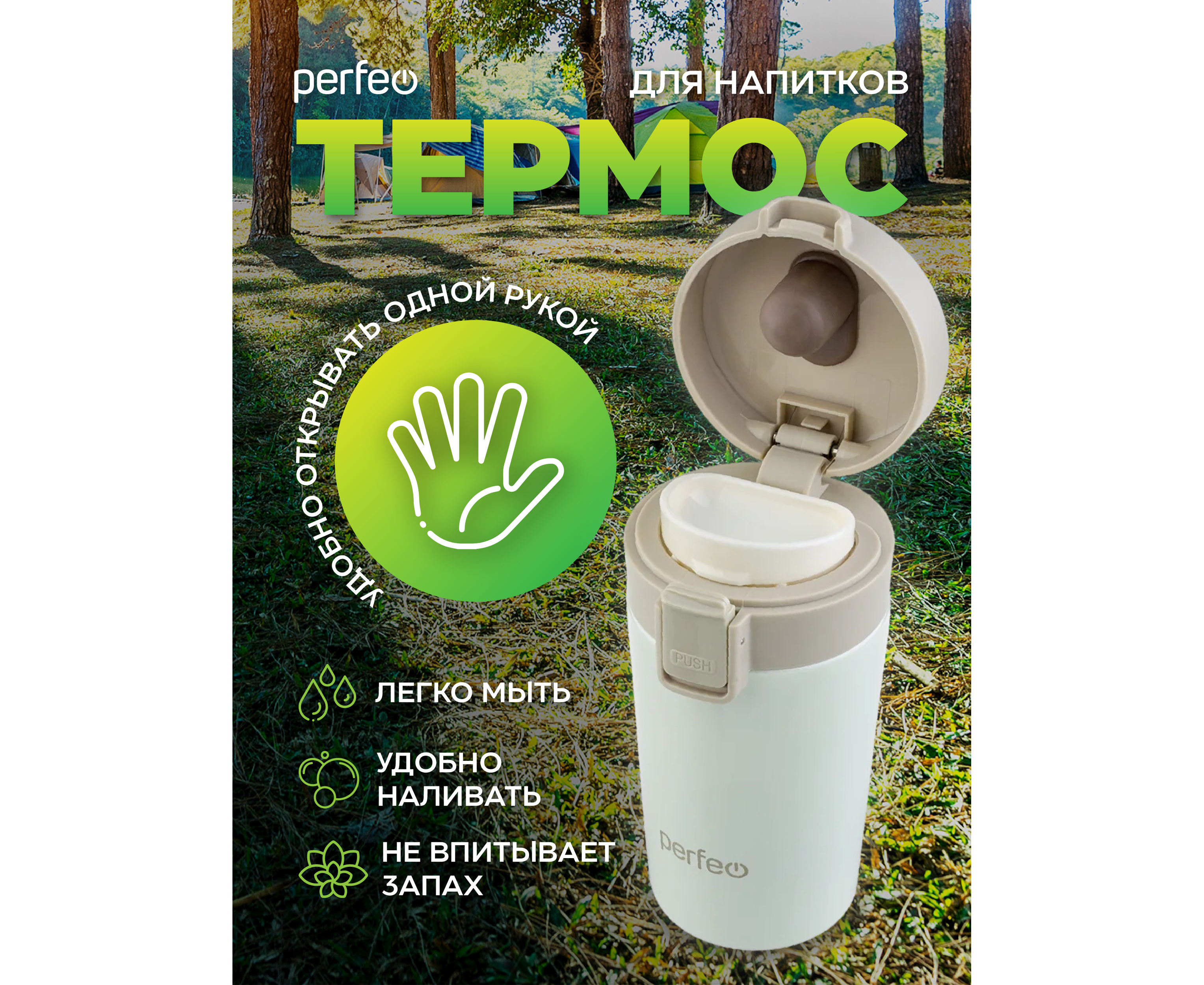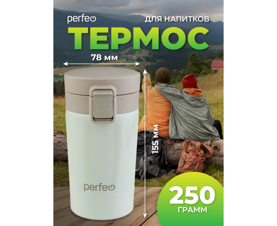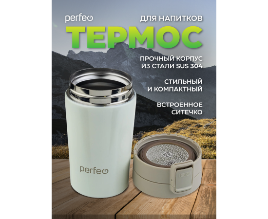 Термокружка для напитков PERFEO с крышкой-поилкой, ситечком, объем 0,25 л., кремовый (PF_C3728)
