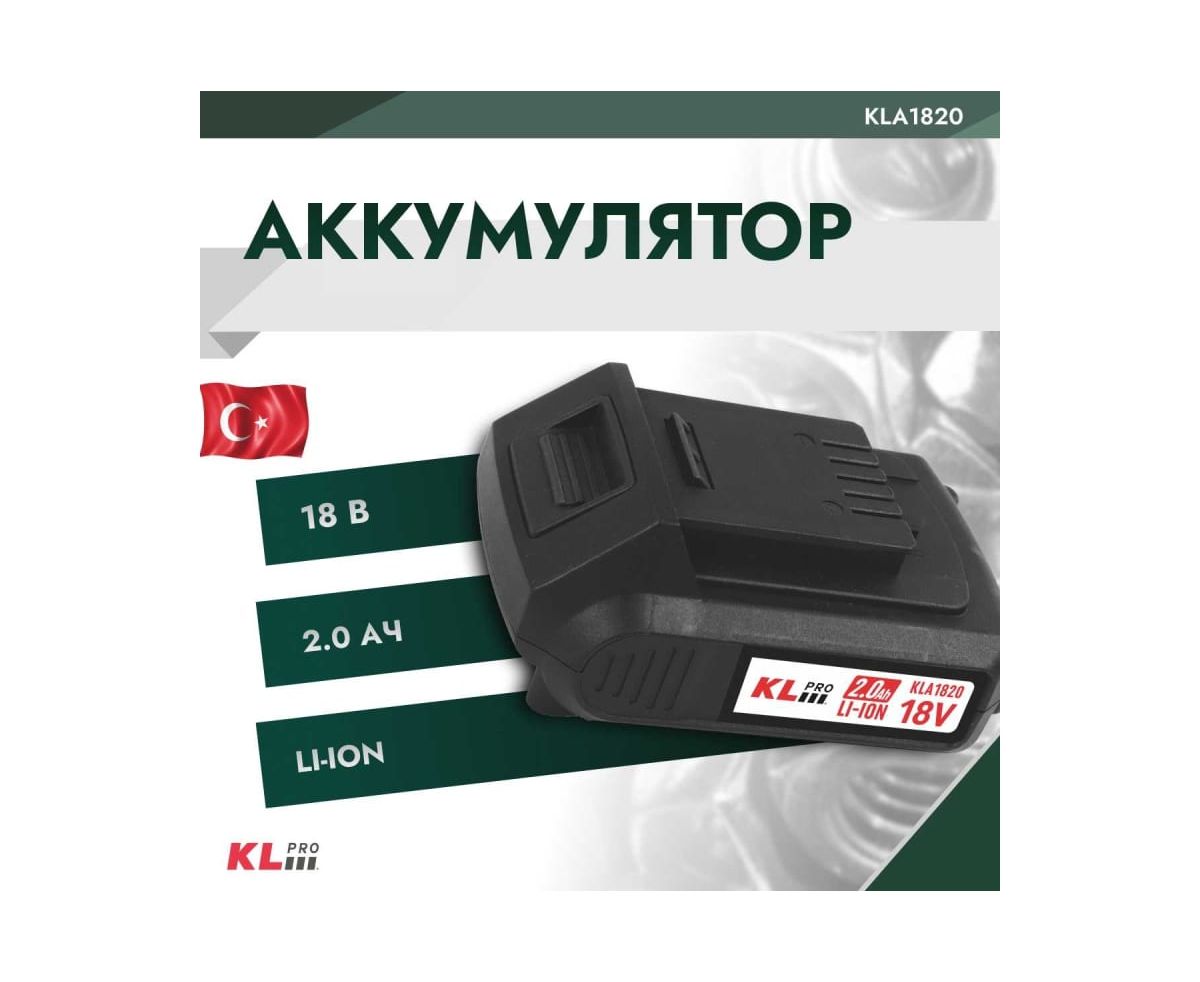 Аккумулятор KLPRO KLA1820 Li-ion 18В/2,0Ач, подходит для любого инструмента 18В