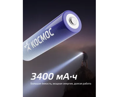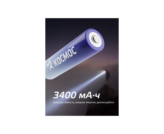 Аккумулятор Космос 18650 Li-ion 1500mAh KOC18650Li-ion15UBL1 без защиты, 1шт блистер