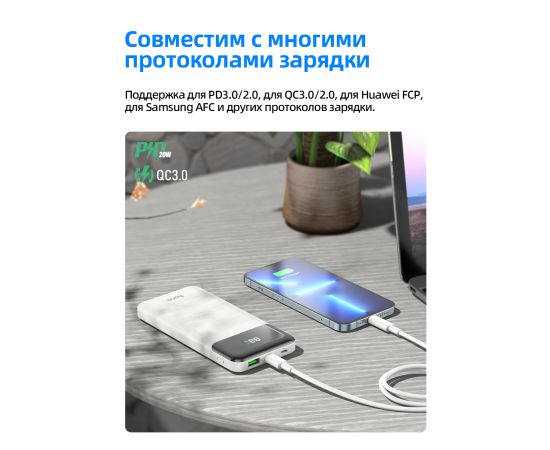 Аккумулятор внешний резервный HOCO J102 10000mAh Cool figure PD20W, QC3.0 (белый)