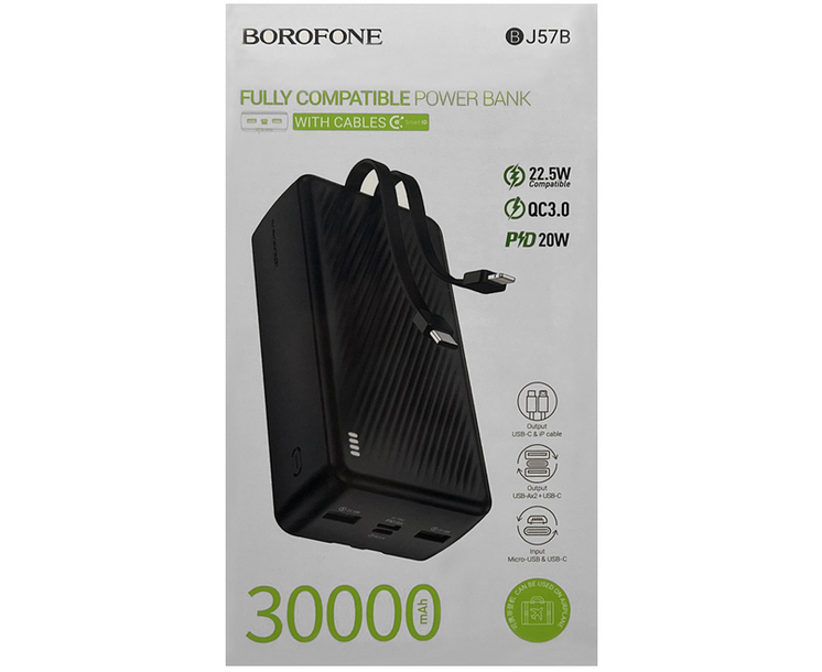 Аккумулятор внешний резервный BOROFONE BJ57B Graceful 22.5W+PD20W fully compatible power bank with cable(30000mAh) (черный)