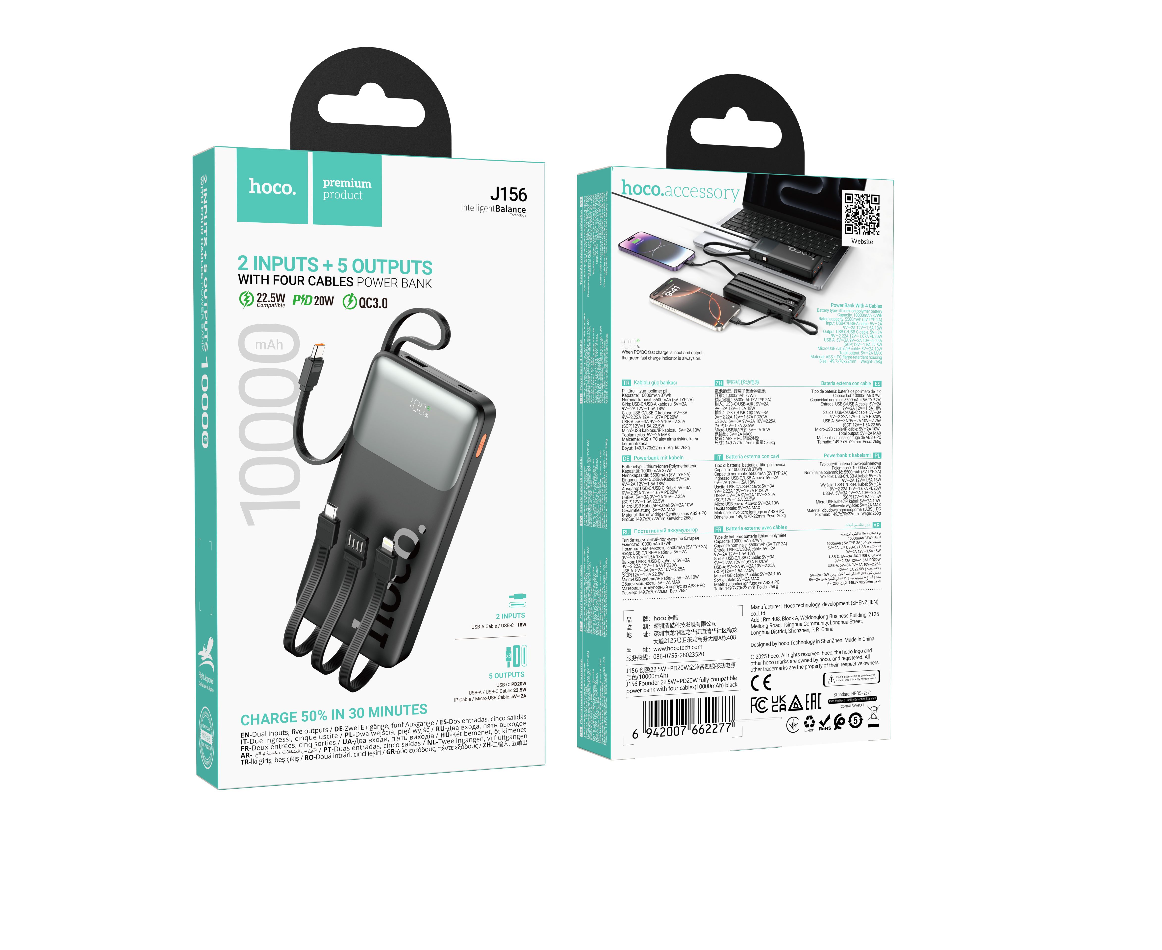 Аккумулятор внешний резервный HOCO J156 Founder 22.5W+PD20W fully compatible 10000mAh (черный)