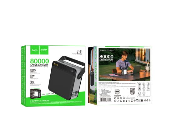 Аккумулятор внешний резервный HOCO J161 Power 22.5W+PD20W fully compatible with lighting (80000mAh) (черный, серый)