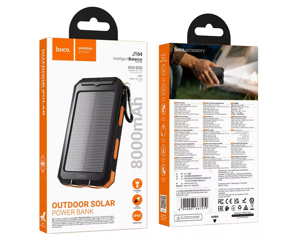 Аккумулятор внешний резервный HOCO J164 Platinum solar dual lighting (8000mAh) (черный)
