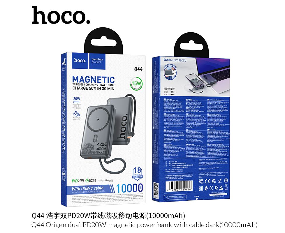 Q44 Origen PD20W магнитный портативный аккумулятор с кабелем (10000mAh)