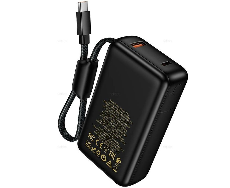 Hoco Q53 Skillful — это компактный, но мощный внешний аккумулятор с поддержкой быстрой зарядки PD65W и QC3.0, созданный для современных смартфонов, планшетов и даже ноутбуков. Благодаря встроенному кабелю USB Type-C вам не нужно носить дополнительные провода — всё уже под рукой.