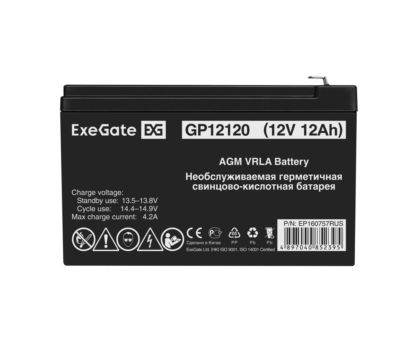 Свинцово-кислотные необслуживаемые аккумуляторы ExeGate серии GP изготовлены по технологии AGM. Обладают низким внутренним сопротивлением и саморазрядом. Оптимизированы для работы в режиме постоянного подзаряда (буферный режим) или в режиме разряд-заряд (циклический режим).