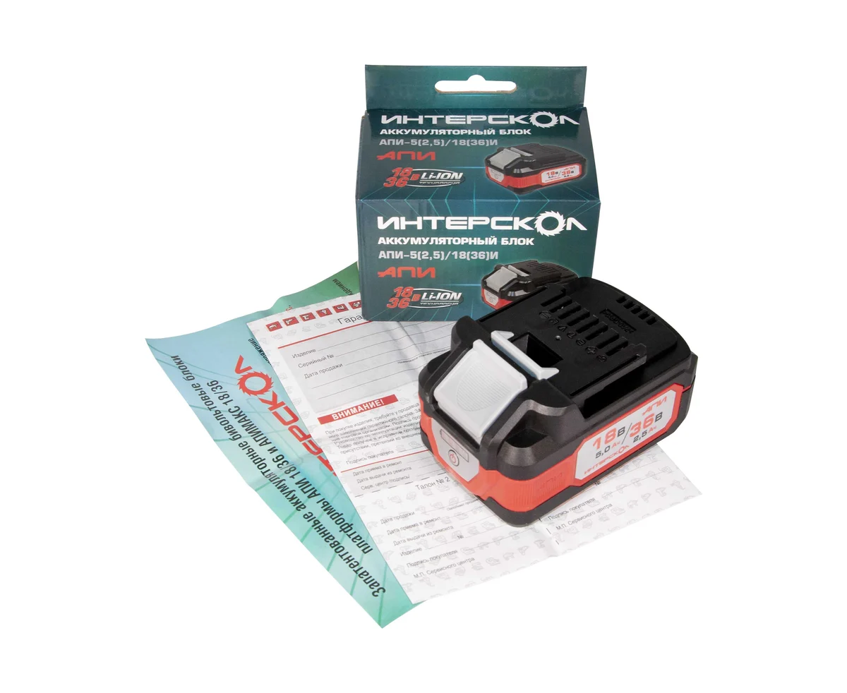 Важнейшая новинка аккумуляторной платформы ИНТЕРСКОЛ – литий-ионные аккумуляторные батареи слайдерного типа АПИ 18/36 В и емкостью 5,0/2,5 А∙ч. Их уникальность заключается в способности работать с инструментом, рассчитанным на номинальное напряжение как 18 В, так и 36 В, причем переключение происходит автоматически, полностью исключая вероятность ошибки пользователя.