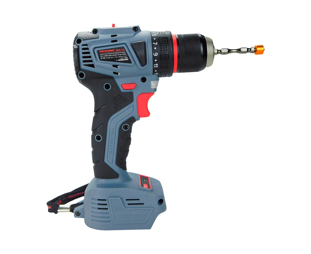 Дрель аккумуляторная бесщеточная ProfiPower MKBL18B предназначена для ремонтных и строительных работ, сверления древесины, металлов, керамики и синтетических материалов, для завинчивания или откручивания винтов, нарезания резьбы.