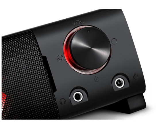 Акустическая система-трансформер с горизонтальным совместным (саундбар) или вертикальным раздельным размещением (классические колонки). Светодиодная подсветка динамиков и удобный регулятор громкости звука. На передней панели размещены разъемы для подключения гарнитуры.