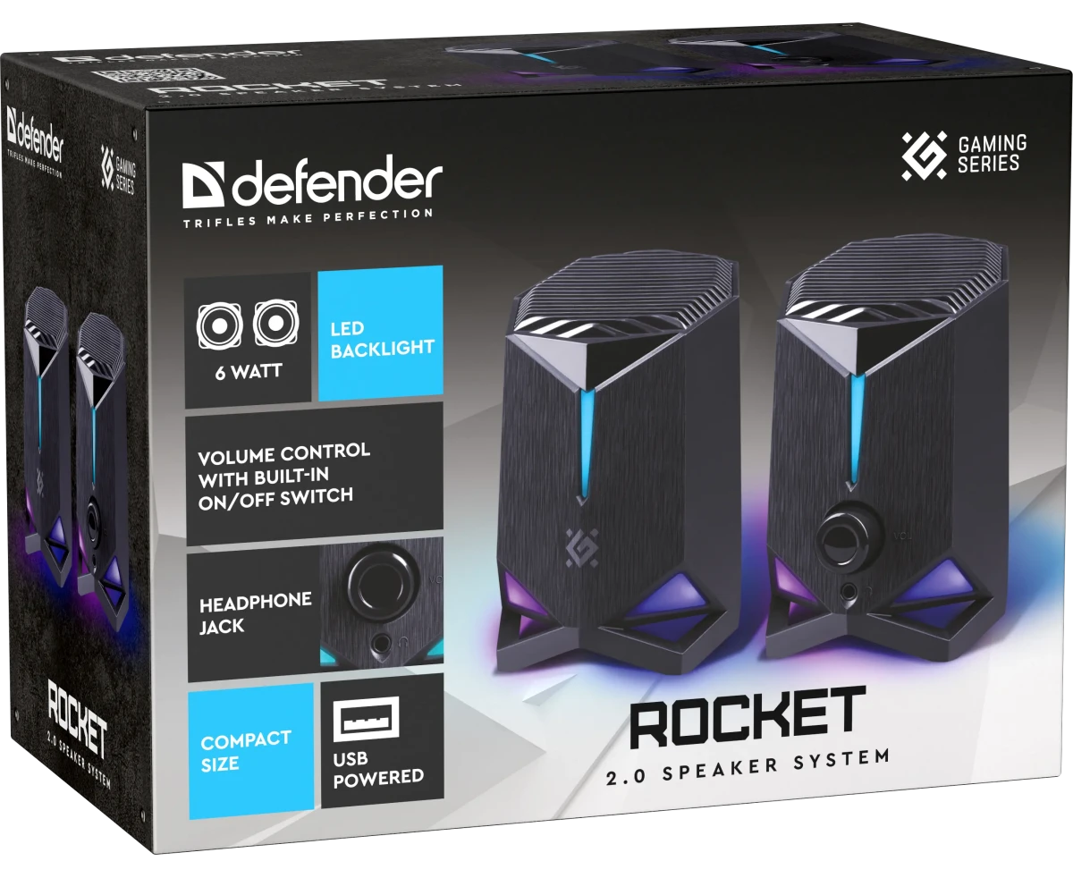 Акустическая 2.0 система DEFENDER Rocket 6Вт, подсветка, питание от USB (65094)