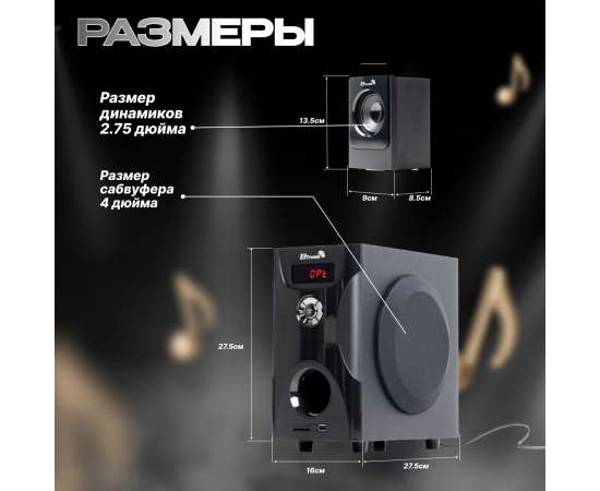 Мощность системы составляет RMS 80 Ватт и PMPO 800 Ватт, что позволяет достичь глубокого и качественного звука. Вы почувствуете каждую ноту и каждый звуковой эффект, будто находитесь в кинотеатре.