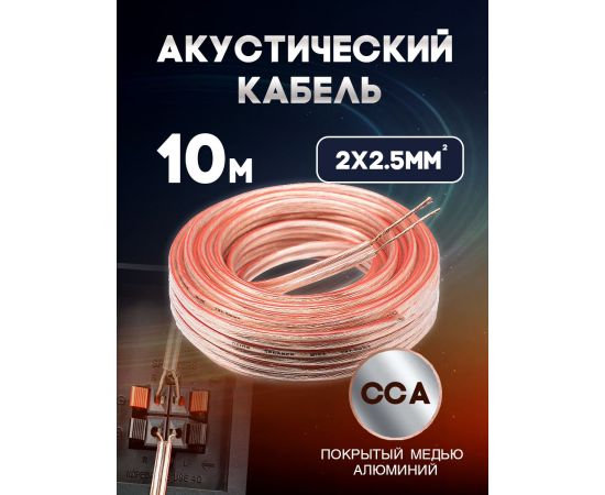 Акустический кабель 2х2.5 мм, 10м - это надежное и качественное решение для подключения аудиоустройств, систем видеонаблюдения, аксессуаров, колонок и аудиосистемы в автомобилях.