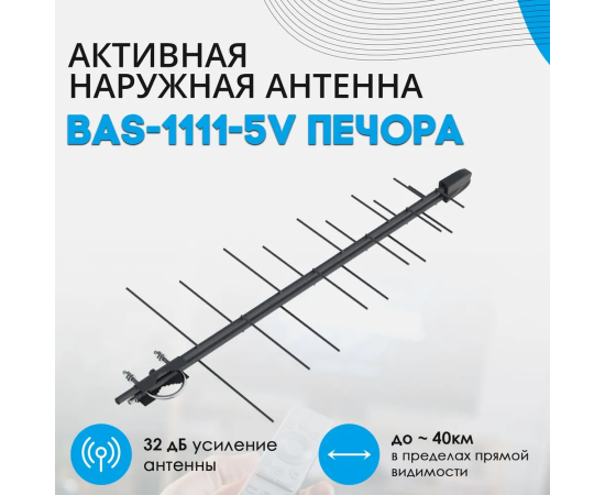 Антенна ТВ РЭМО "Печора", активная, наружная, питание от антенного разъема, (BAS-1111-5V), (Арт. PF_205053)