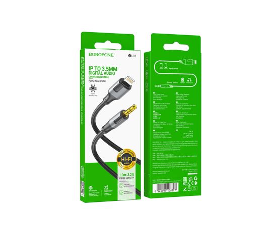 Аудиокабель AUX 3.5mm Lightning 8-pin 1.0м Borofone BL19 (Black)