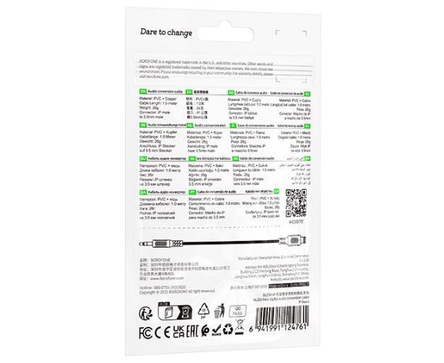 Аудиокабель BOROFONE BL25/ AUX /3.5 mm jack - Lightning/ 1m/ черный