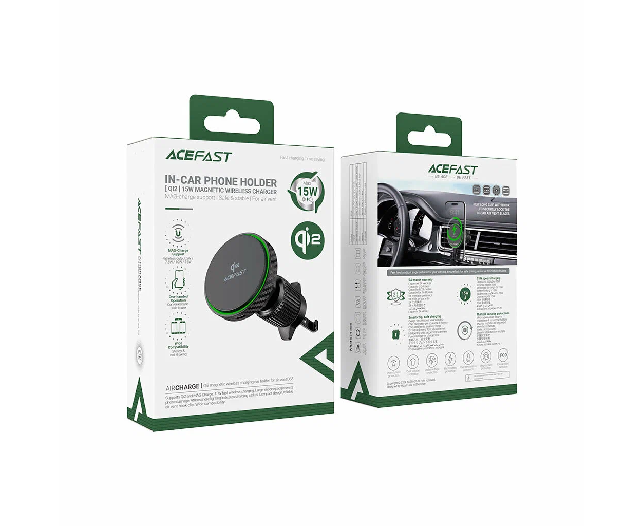 Acefast D33 сочетает в себе мощную магнитную фиксацию, быструю беспроводную зарядку по технологии Qi2 и удобство использования одной рукой, что делает его идеальным решением для автомобилистов. Устройство надежно удерживает смартфон, легко устанавливается на вентиляционную решетку и подходит для большинства современных телефонов, поддерживающих Qi-зарядку. Стильный и компактный дизайн дополняет интерьер автомобиля, обеспечивая безопасность и комфорт в дороге.