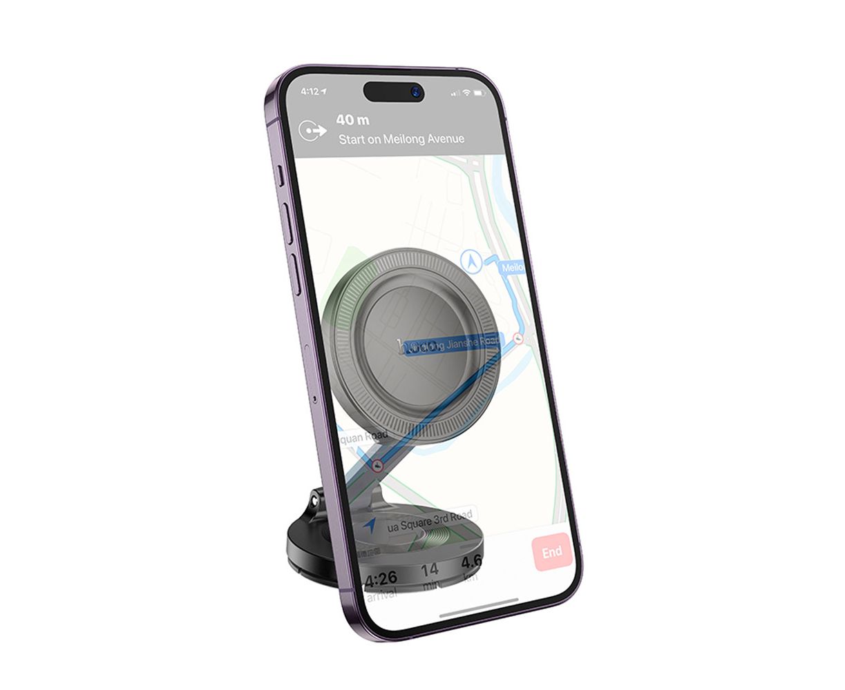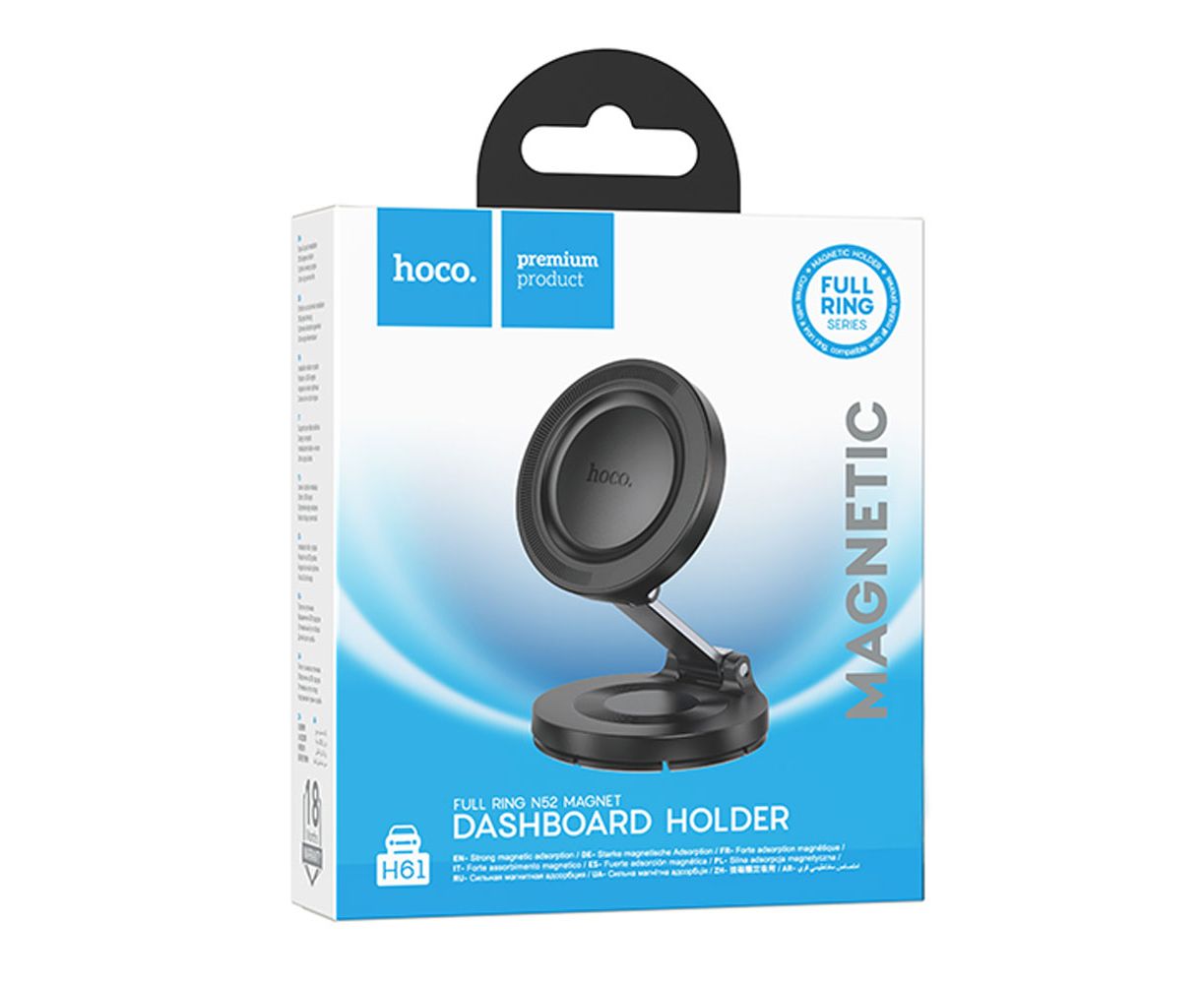 Автодержатель HOCO H61 Show folding ring magnetic car holder (dashboard) Black metal gray