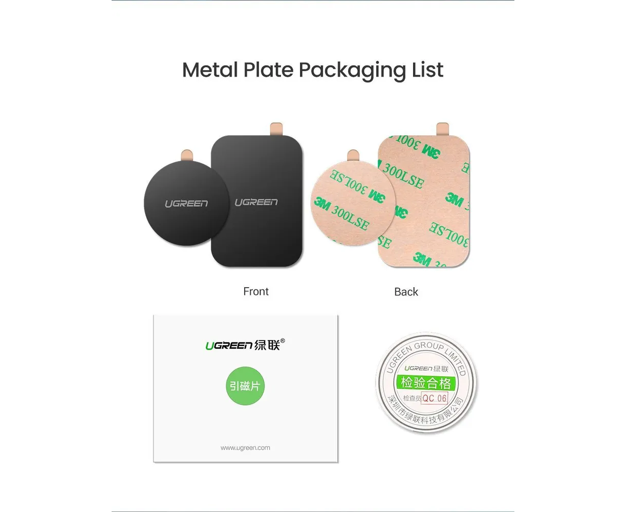 Металлическая пластина круглая и прямоугольная на телефон для магнитного держателя UGREEN LP123 (60410) Rectangular + Rounded Metal Plate for Magnetic Phone Stand 2 Pack