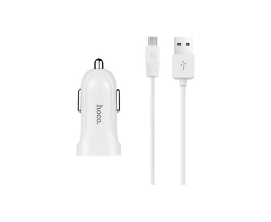 Автомобильное зарядное устройство 2USB 2.4A с кабелем micro USB HOCO Z2A (White)