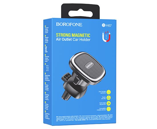Автомобильный держатель BOROFONE BH67 Air outlet, магнитный, на воздуховод, черный+серый металлик