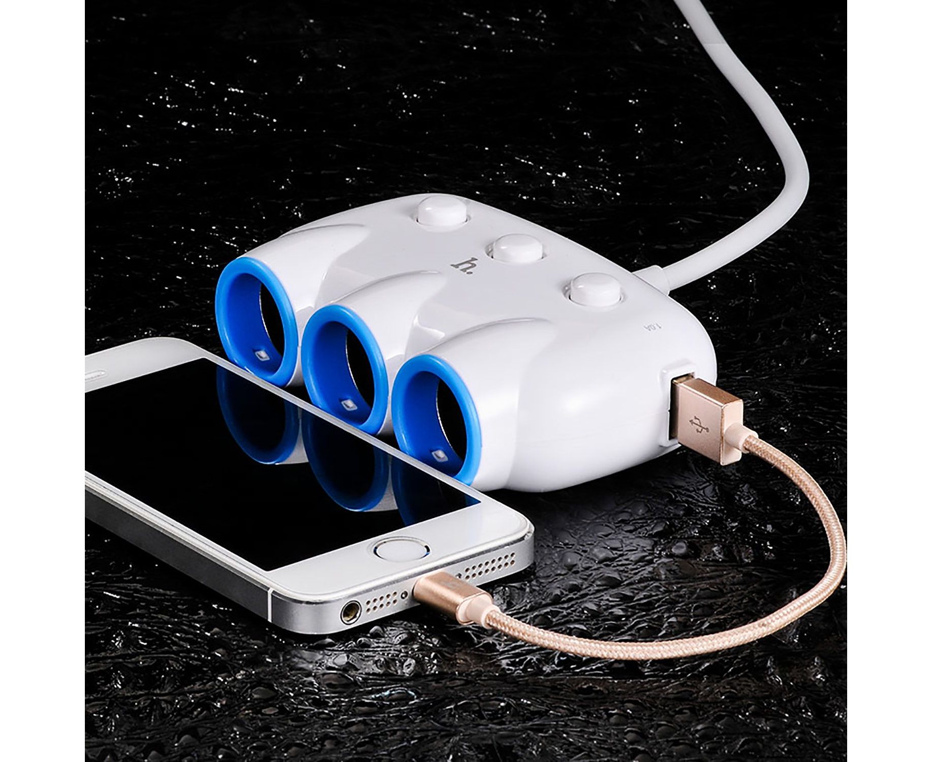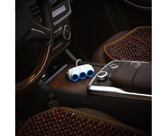 Автомобильный разветвитель прикуривателя Hoco C1 3in1 2USB (white) (102273)