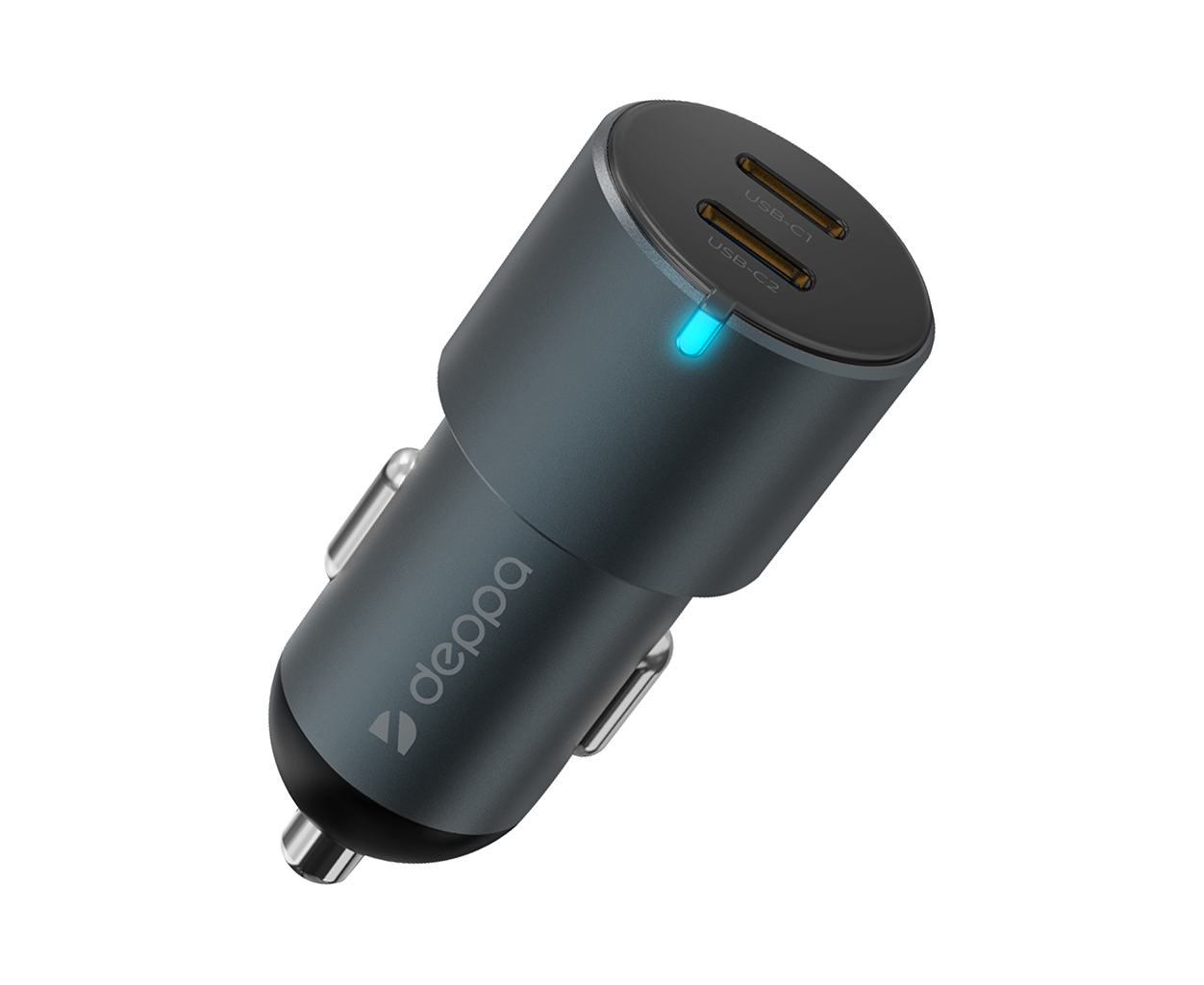 AЗУ 2xUSB-C, PD, 60W, металл, серый, Deppa