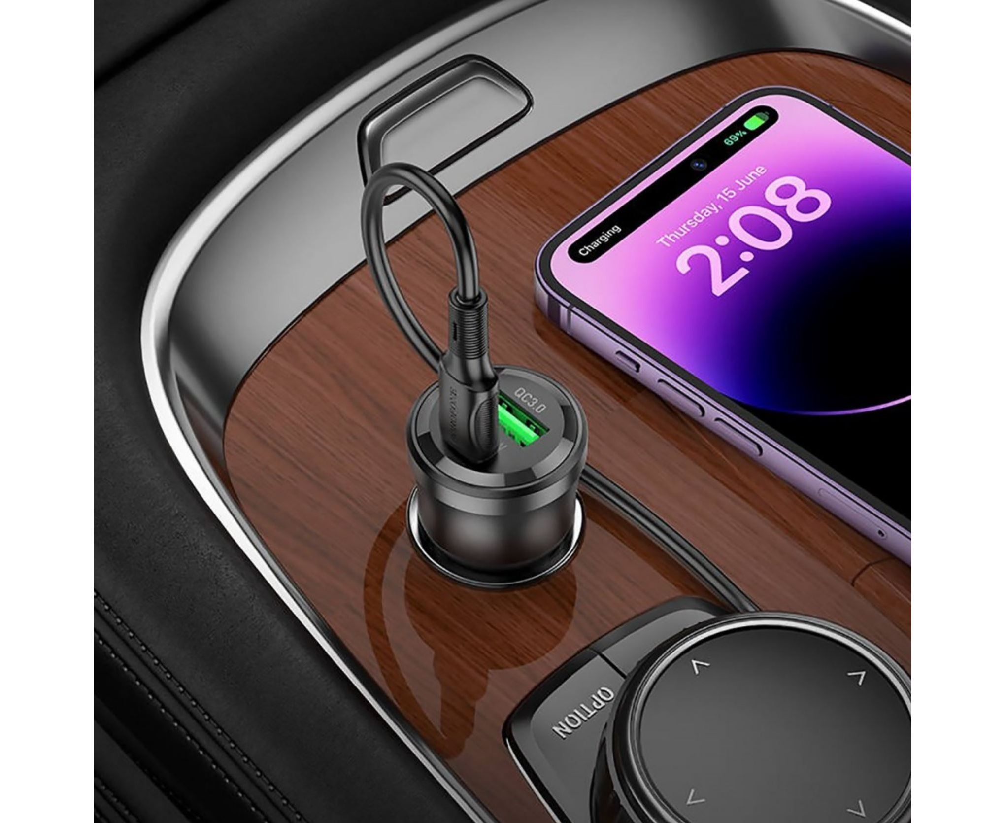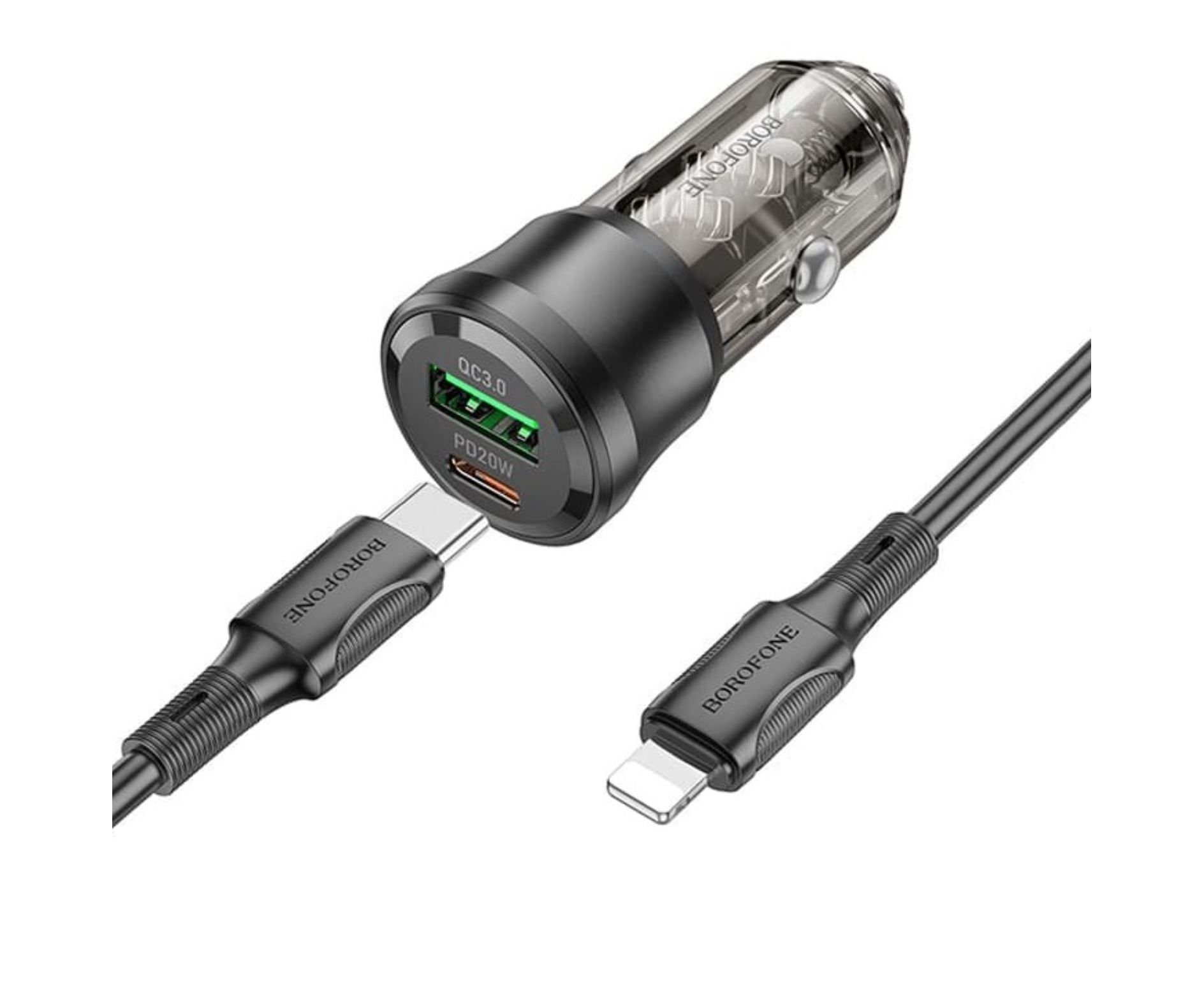 АЗУ BOROFONE BZ25 Journey PD38W Type-C+USB-A car charger set (Type-C to iP) 1м (прозрачный-черный)