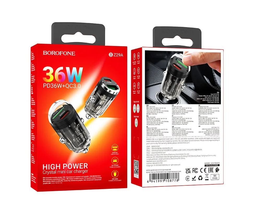 АЗУ BOROFONE BZ29A Talented PD36W+QC3.0 car charger (черный)