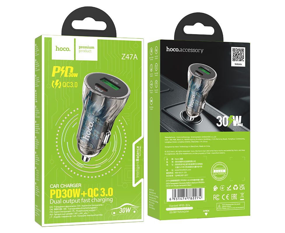 АЗУ HOCO Z47A Transparent Discovery Edition dual port PD30W+QC3.0 transparent black