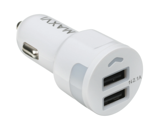 АЗУ Maxvi CCM-212 Plus M white 2.1A, 2xUSB, microUSB подсветка синяя